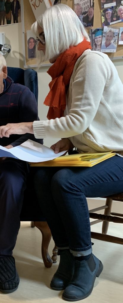 I use the Arts in general to connect with your loved one. Sketching, ink, watercolour, music singing and drumming, as well as creative writing. Creativity and well chosen art programs support well being for people living with dementia.
